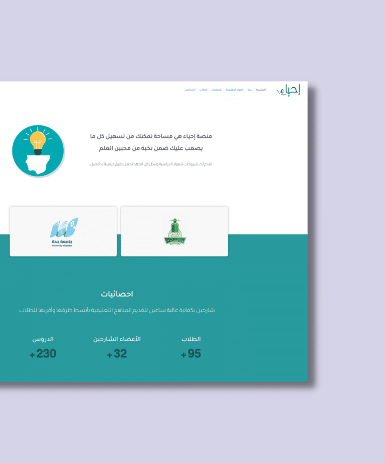 منصة لشروحات المواد التعليمية الجامعية تاريخ العمل: نوفمبر 2022 رابط الموقع: ehyaa.online