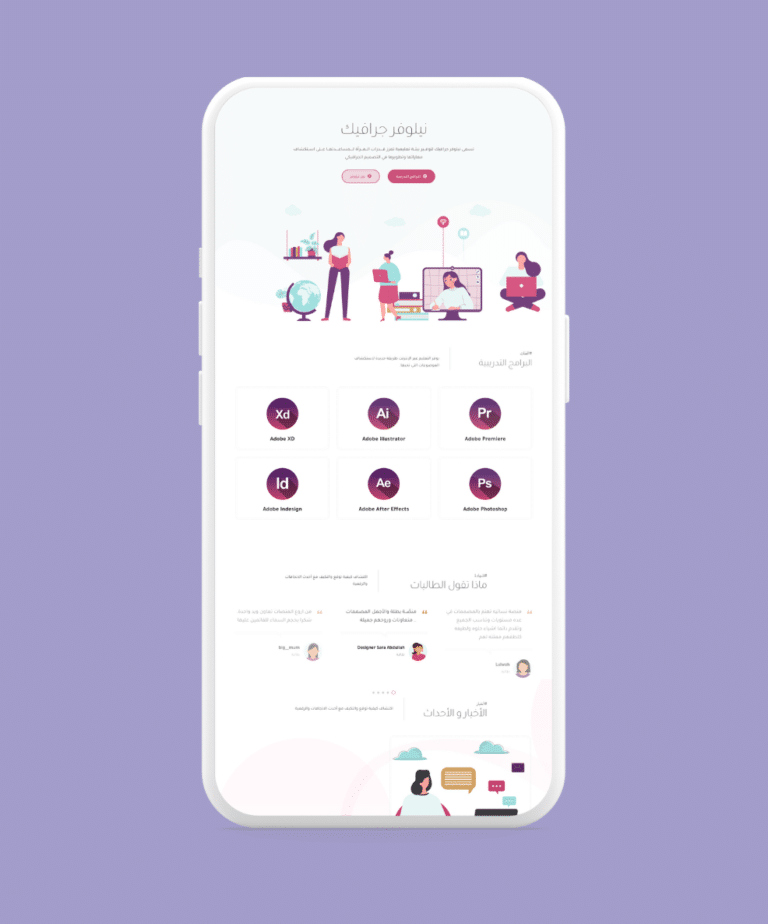 منصة للدورات التدريبية في مجال تصميم الجرافيك تاريخ العمل: أبريل 2021 رابط الموقع: nilufergraphic.com (تم إغلاق الموقع)